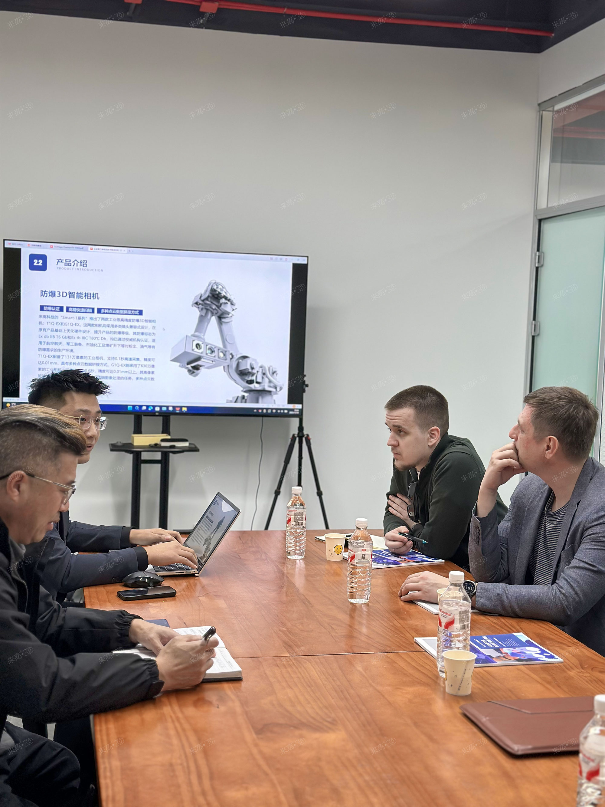 俄羅斯客戶聽取了田海峰關(guān)于公司創(chuàng)新技術(shù)和重大應(yīng)用項(xiàng)目開展情況的介紹,詳細(xì)探討了來高科技三維掃描產(chǎn)品和智能機(jī)器視覺技術(shù)在國內(nèi)客戶重大項(xiàng)目中的創(chuàng)新表現(xiàn)。